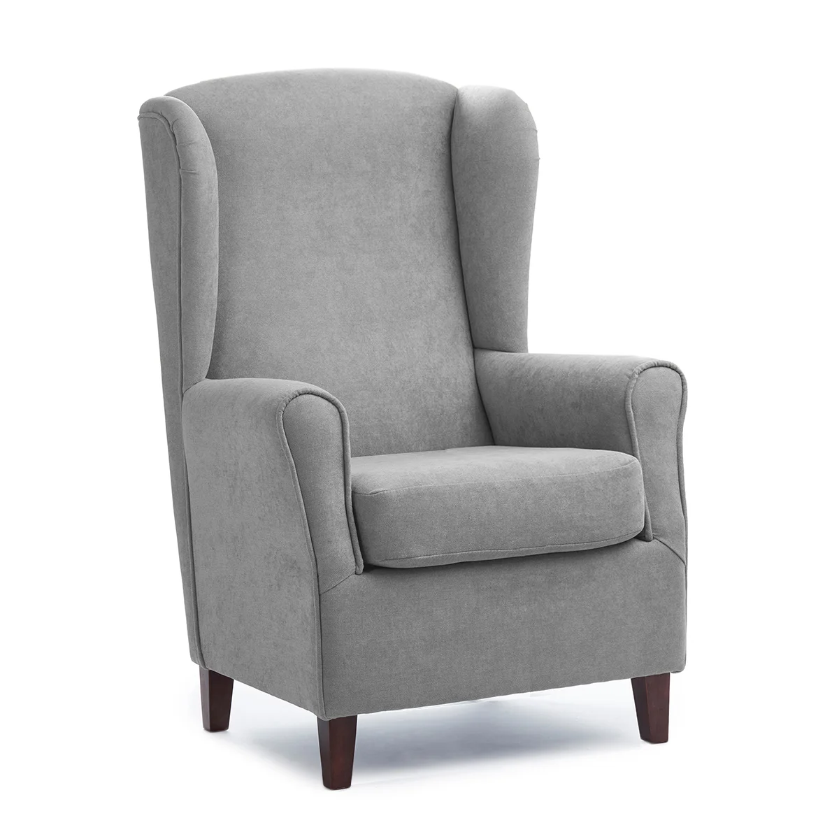 Sillón orejero: ancho con respaldo alto color gris